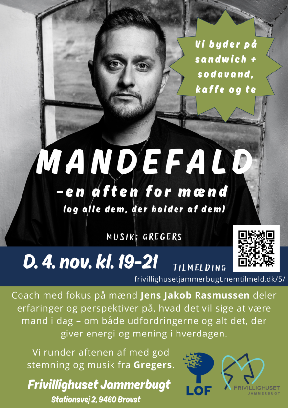 I samarbejde med LOF Jammerbugt holder Frivillighuset et foredrag med efterfølgende musik, hvor vi taler om, hvad det vil sige at være mand i dag – både når livet driller, og når det giver mening.